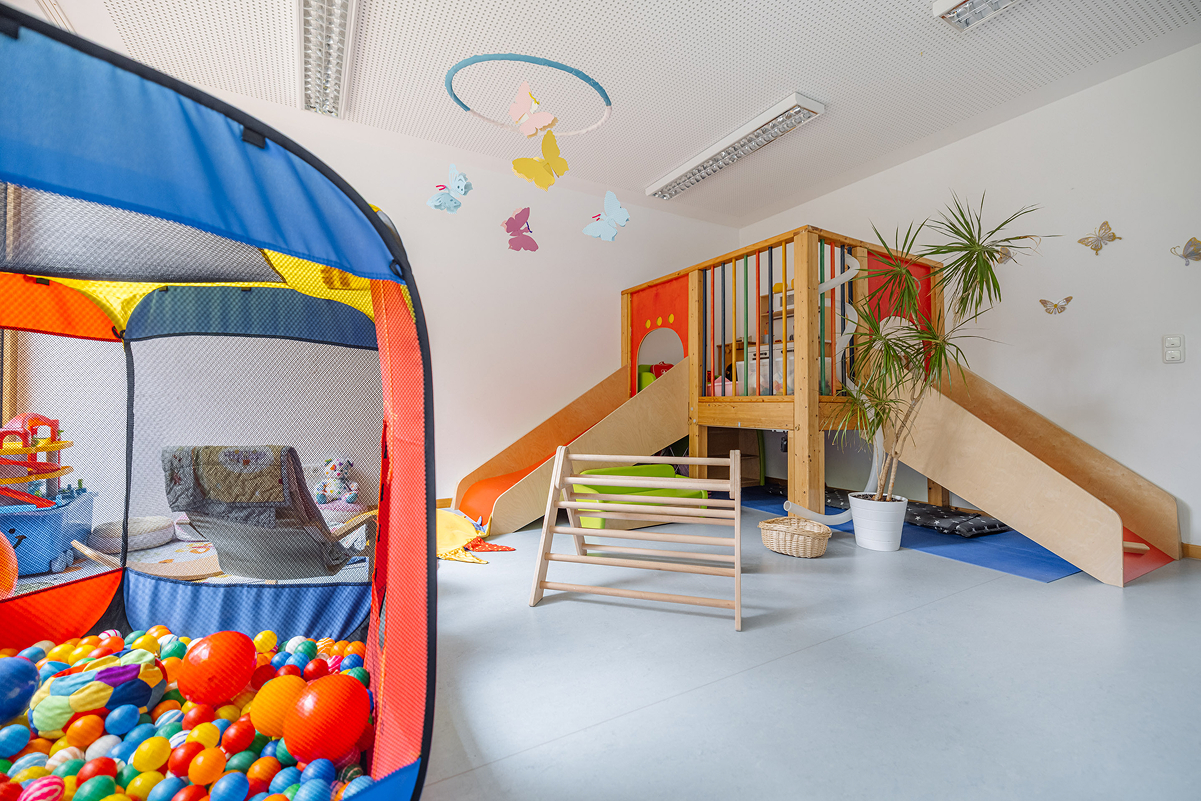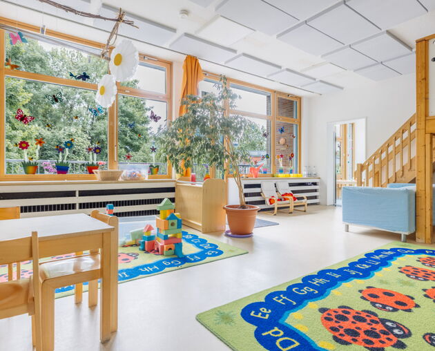 Frisch, gesund und lecker – unsere hauseigene Köchin verwöhnt die Kinder täglich mit abwechslungsreichen, saisonalen Gerichten. Auch in unseren hellen, altersgerecht gestalteten Räumen setzen wir Impulse, die Kreativität, Neugier und soziales Miteinander stärken. In unserer Nestgruppe finden die Kleinsten einen geschützten Rahmen zum Ankommen und Wachsen, während unser gruppenübergreifendes Konzept den Austausch zwischen den Altersstufen fördert.