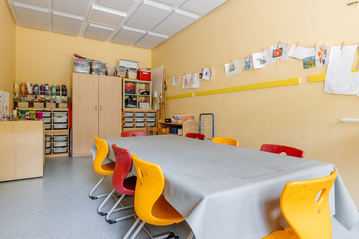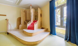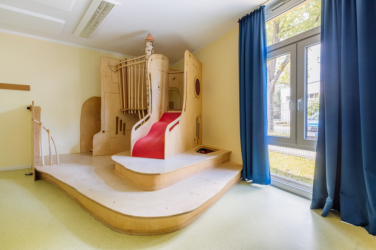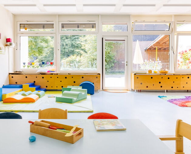 Unsere kindgerechten Räumlichkeiten und unser weitläufiges Außengelände laden zum Erkunden, Spielen und Lernen ein. In unseren Gruppenräumen findet sich jeweils ein zusätzlicher Nebenräumen. Wir haben außerdem ein Kinderatelier, ein Piratenschiff und eine Spielempore aus Holz in unserem Bewegungsraum. Hier erleben die Kinder täglich neue Abenteuer. Zusätzlich bietet die kleine Turnhalle im nahegelegenen KiJu-Haus ein weiteren Bewegungs- und Tobeort für uns.
