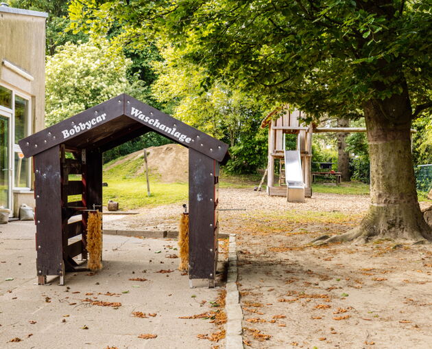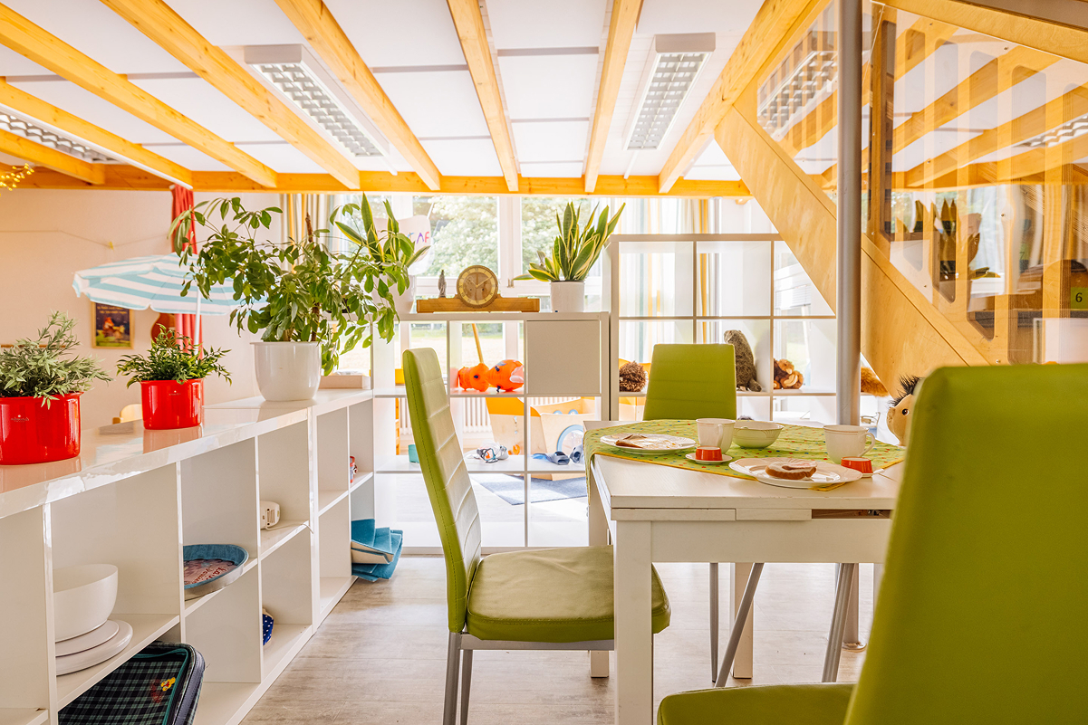 In unseren Werkstatträumen erleben die Kinder die 10 Bildungsbereiche durch kreatives Forschen, Entdecken und Ausprobieren. Unser großes Außengelände mit Niedrigseilgarten, Verkehrsübungstrecke, Wasserspielanlage, Fußballtoren, Schaukel und Rutschenturm lädt zu Bewegung und Abenteuern ein.