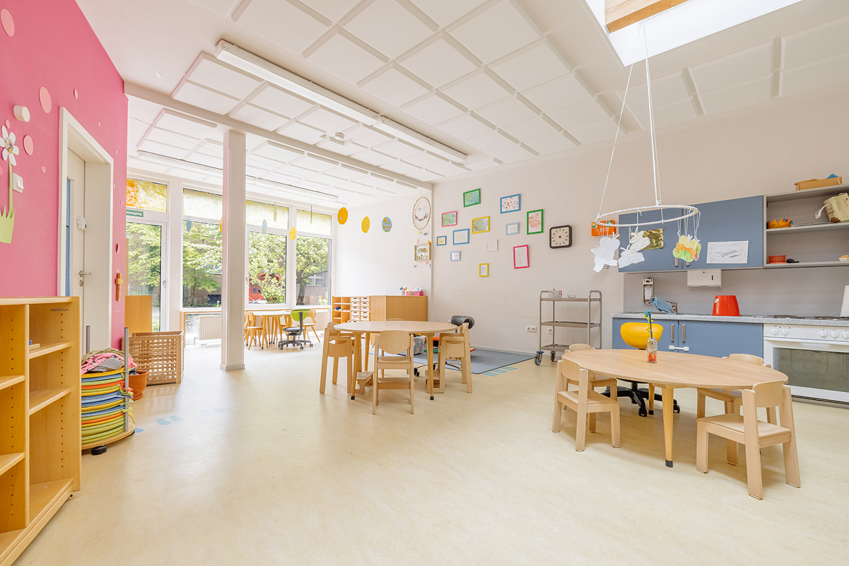 Unsere Kita ist ein liebevoll gestalteter Ort, an dem die individuelle Entwicklung jedes Kindes im Mittelpunkt steht. Wir betreuen Kinder ab einem Alter von 2 Jahren. Die jüngsten Kinder starten in einer der beiden Nestgruppen ihre Kinderhauszeit. In der Regel wechseln die Kinder im Alter von drei bis vier Jahren in den teiloffenen ü3-Bereich. Durch spannende Kinderschutzprojekte wie „Echte Schätze“ und „Fels und Wasser“ fördern wir persönliche Stärke und Gemeinschaftssinn. Ein weiterer Schwerpunkt ist die Kooperation mit dem NABU und das Projekt „Generationsbrücke“ mit dem Seniorenheim Haus Hörn.