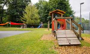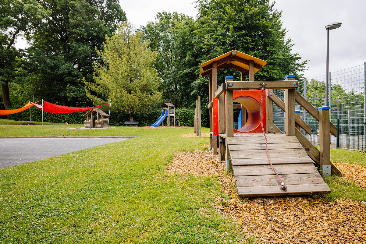 Unsere Kindertageseinrichtung liegt in einem verkehrsberuhigten, familienfreundlichen Wohngebiet, direkt gegenüber der Kirche St. Barbara. Dank unserer naturnahen Lage mit direktem Zugang zum Eschweiler Stadtwald und mehreren großzügigen Spielplätzen in der Umgebung bieten wir den Kindern viel Raum für Bewegung, Erkundung und Naturerfahrung. Unser weitläufiges Außengelände mit Hochbeet lädt zum Entdecken und Erleben ein.