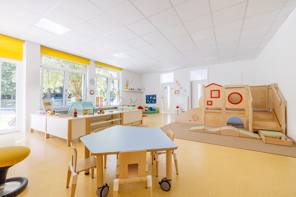 Willkommen im Montessori Kinderhaus St. Fronleichnam, Ihrer Kita in Aachen-Ost! Unser modernes Haus bietet Platz für sechs Gruppen und vereint das bewährte Montessori-Konzept mit den Vorteilen eines Bewegungskindergartens und eines Familienzentrums.