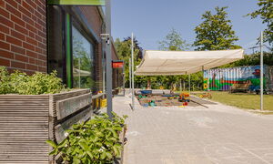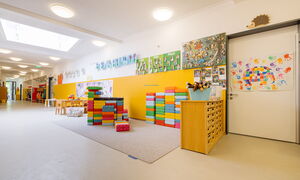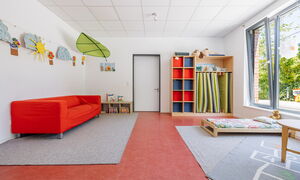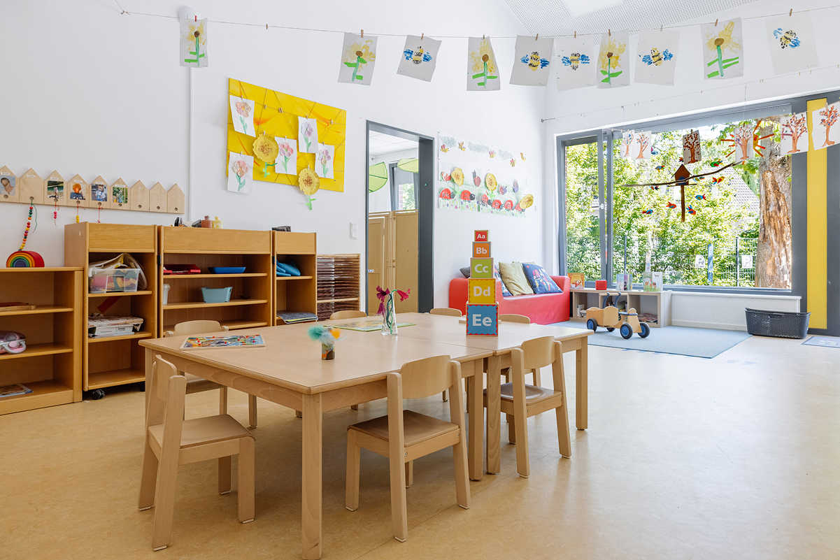 Unsere Kita überzeugt mit großzügigen Räumen, darunter Turnhalle, Kreativatelier, Maxiraum, Vorleseraum, ein großer Flur, sowie unserem weitläufigen Außengelände. Im teiloffenen Konzept des Ü3-Bereichs können die Kinder ihren Alltag aktiv mitgestalten und verschiedene Aktionsbereiche nutzen.